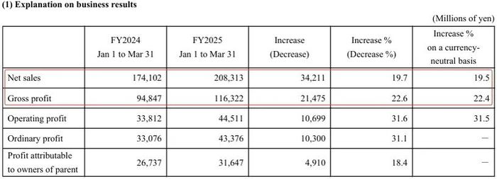 亚瑟士Q1净利润316亿日元,同比增长18%,连续三年创同期新高;