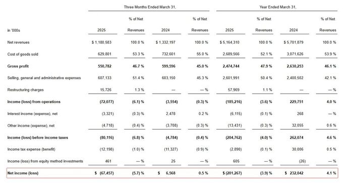 其中,耐克来到了一个阵痛期。2025财年Q3(截至今年2月28日)总营收113亿美元,同比下滑9%。但好消息是,营收和净利润跌幅均低于市场预期,且库存总额同比减少2%至75亿美元,实现“三连降”,库存压力持续改善。花旗也在财报公布后第一时间给出“持有”评级,表明市场正逐步重拾对耐克的信心。
